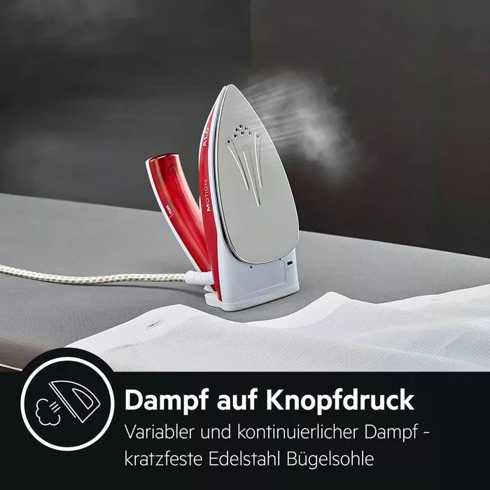 • Kratzfeste Edelstahl-Bügelsohle mit hervorragenden Gleiteigenschaften