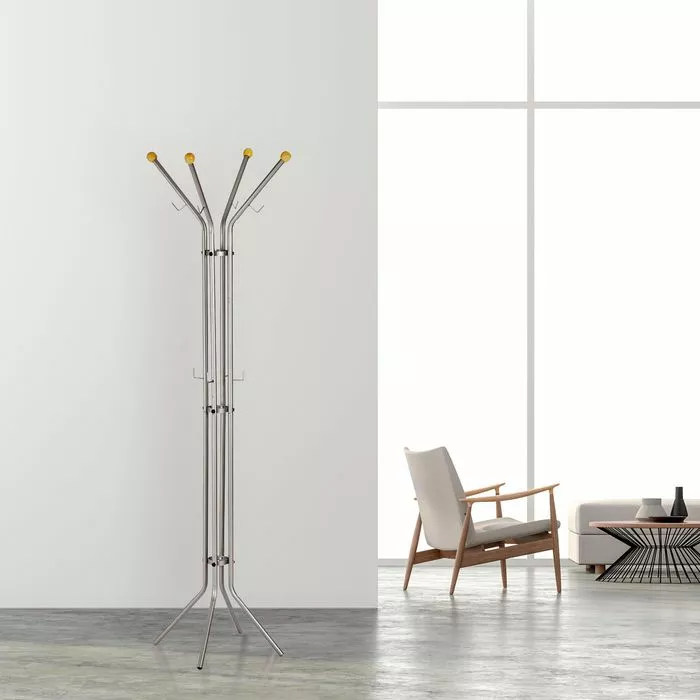 Vasagle Garderobenständer HSR086B02, Mit 24 Haken, Metall / Holz, Schwarz / Graubraun