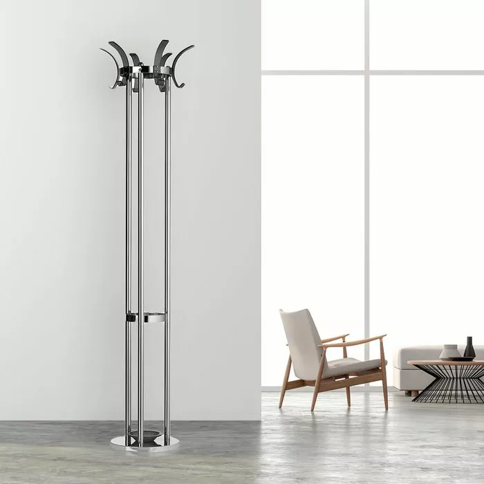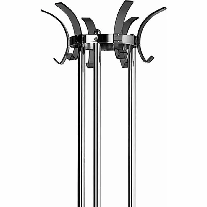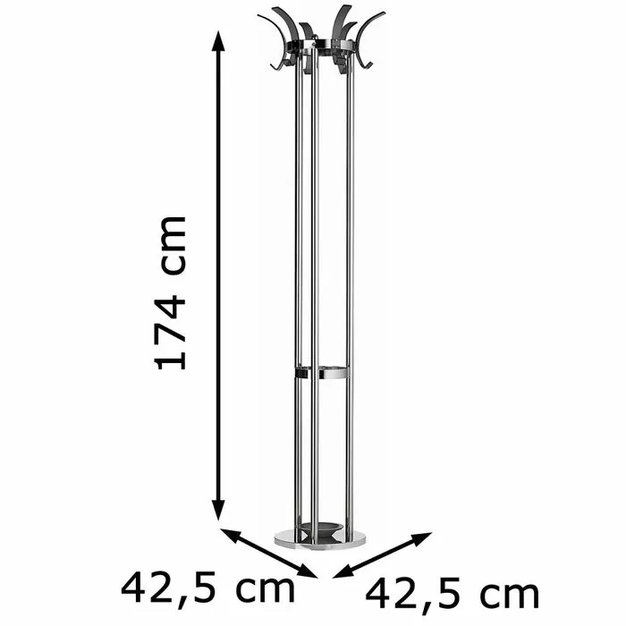 sonstiges: aus verchromtem Metall, Hakenkrone mit 6 Hut- und 6 Mantelhaken, Tropfschale und Schirmhalter
