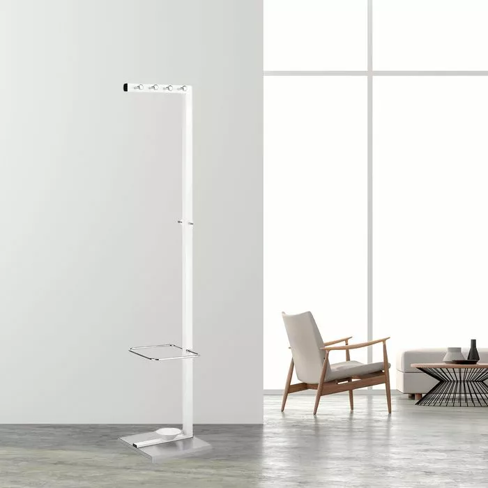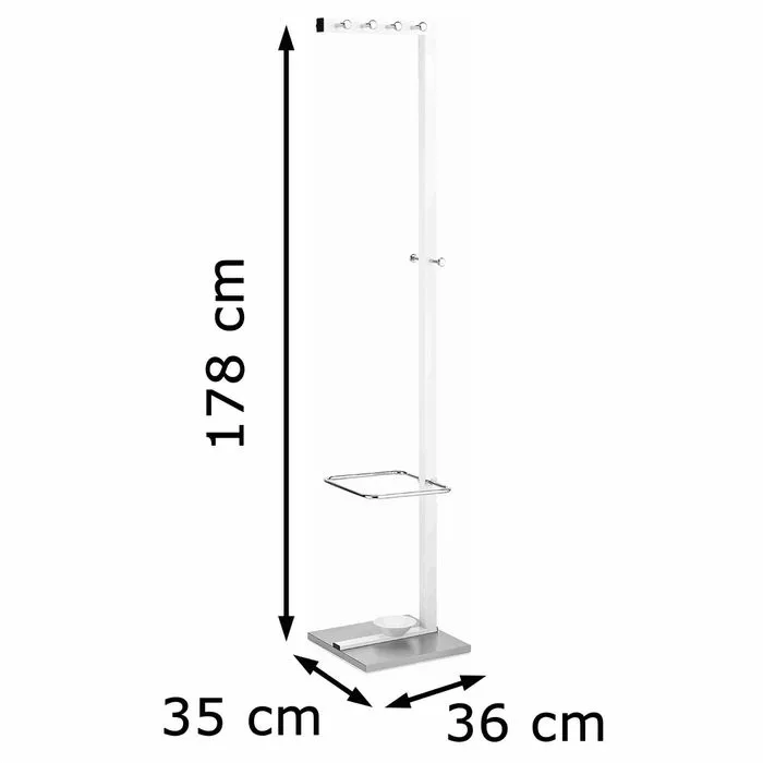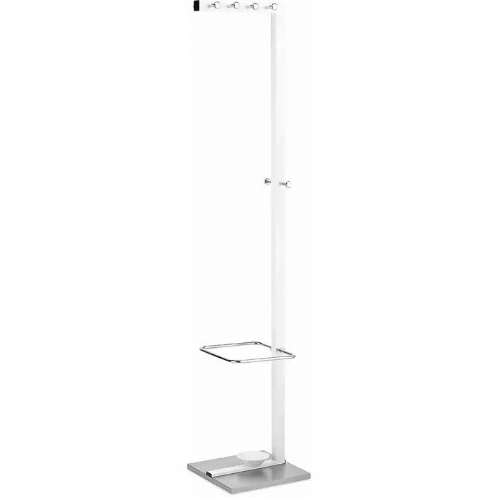 sonstiges: aus lackiertem Metall, 8 Mantelhaken, 2 Hut-/Taschenhaken, ausgefallenes Design, quadratischer Fuß aus geschliffenem Edelstahl, mit Schirmständer und Tropfschale