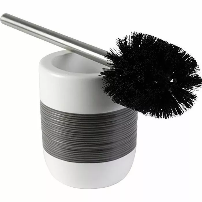 • Glänzender, Edelstahlstiel mit wechselbarem, schwarzem Bürstenkopf