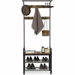 Vasagle Garderobenständer HSR087B01, Vintage, Mit 16 Haken, Metall / Holz, Schwarz / Braun