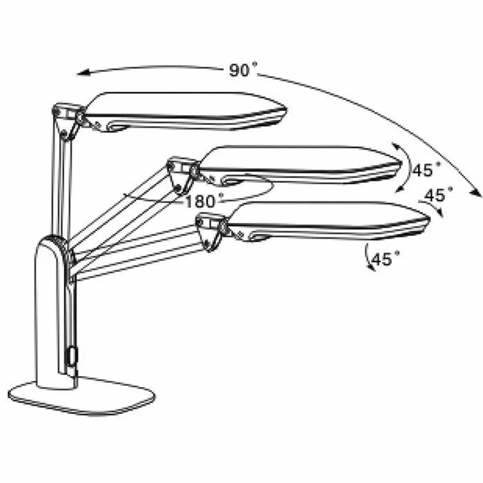 sonstiges: mit großer Ausladung, Leuchtenarm stufenlos verstellbar, Leuchtenkopf horizontal und vertikal verstellbar, Schalter am Leuchtenarm, stabiler Standfuß