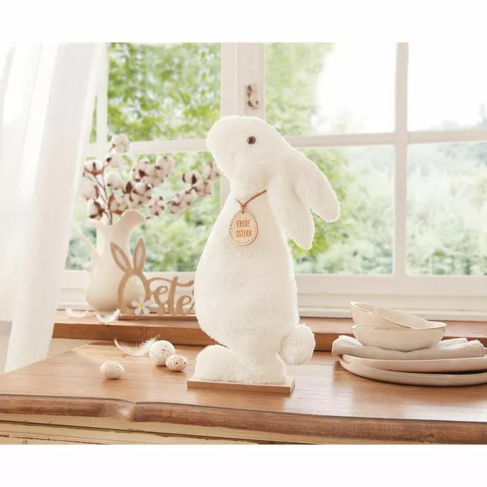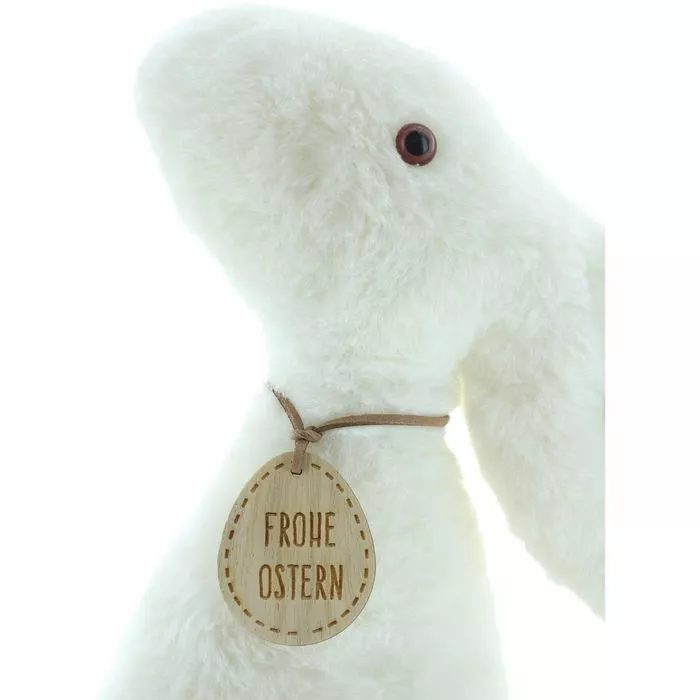 • Mit Frohe Ostern-Halskette und Holz-Sockel