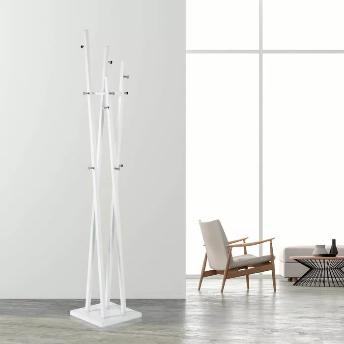 sonstiges: aus lackiertem Metall, mit 12 verchromten Kleiderhaken, standsicher durch schweren Standfuß