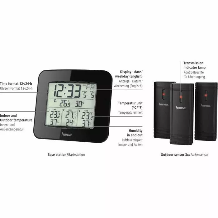 Funktionen: mit Uhrzeit, MIN-/MAX-Anzeige, mit Außensensor