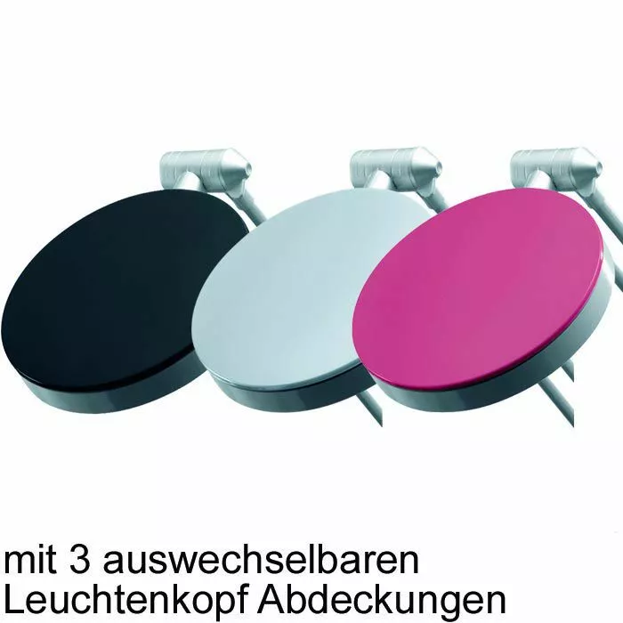 Lieferung: inkl. 3 auswechselbaren Leuchtenkopf-Abdeckungen (silber, schwarz, pink)