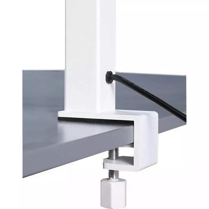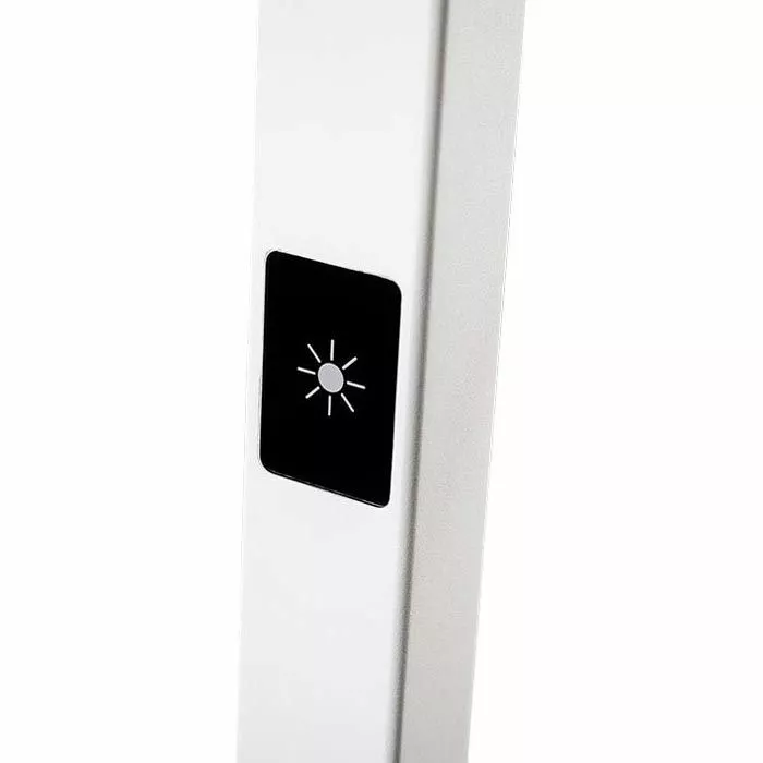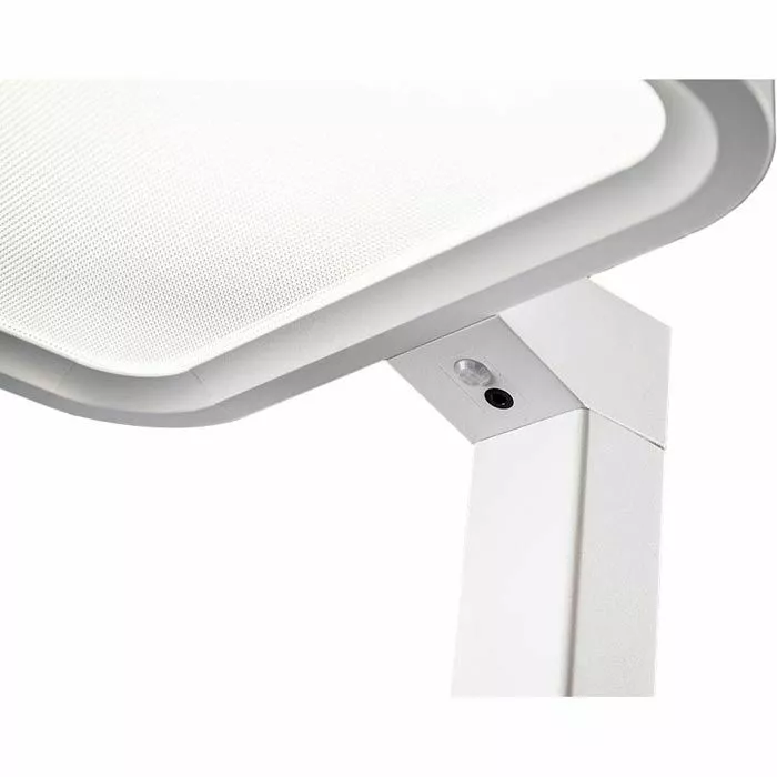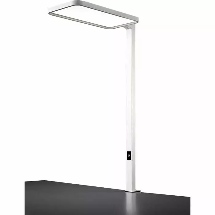 sonstiges: integrierter Bewegungssensor dimmt Licht nach 30 Min. ohne Bewegung und schaltet nach weiteren 30 Min. aus, Tageslichtsensor reguliert den Kunstlichtanteil, gleichzeitig direktes sowie indirektes Licht (Abstrahlung nach unten: 50%, Abstrahlung nach oben: 50%), Touch-Dimmer am Leuchtenmast, mikroprismatischer Diffusor für homogene Lichtverteilung und zur Vermeidung störender Blendung (UGR < 18), Netzkabellänge 2,5 m, mit Klemme zum Fixieren an Tischen bis zu einer Stärke von 40 mm