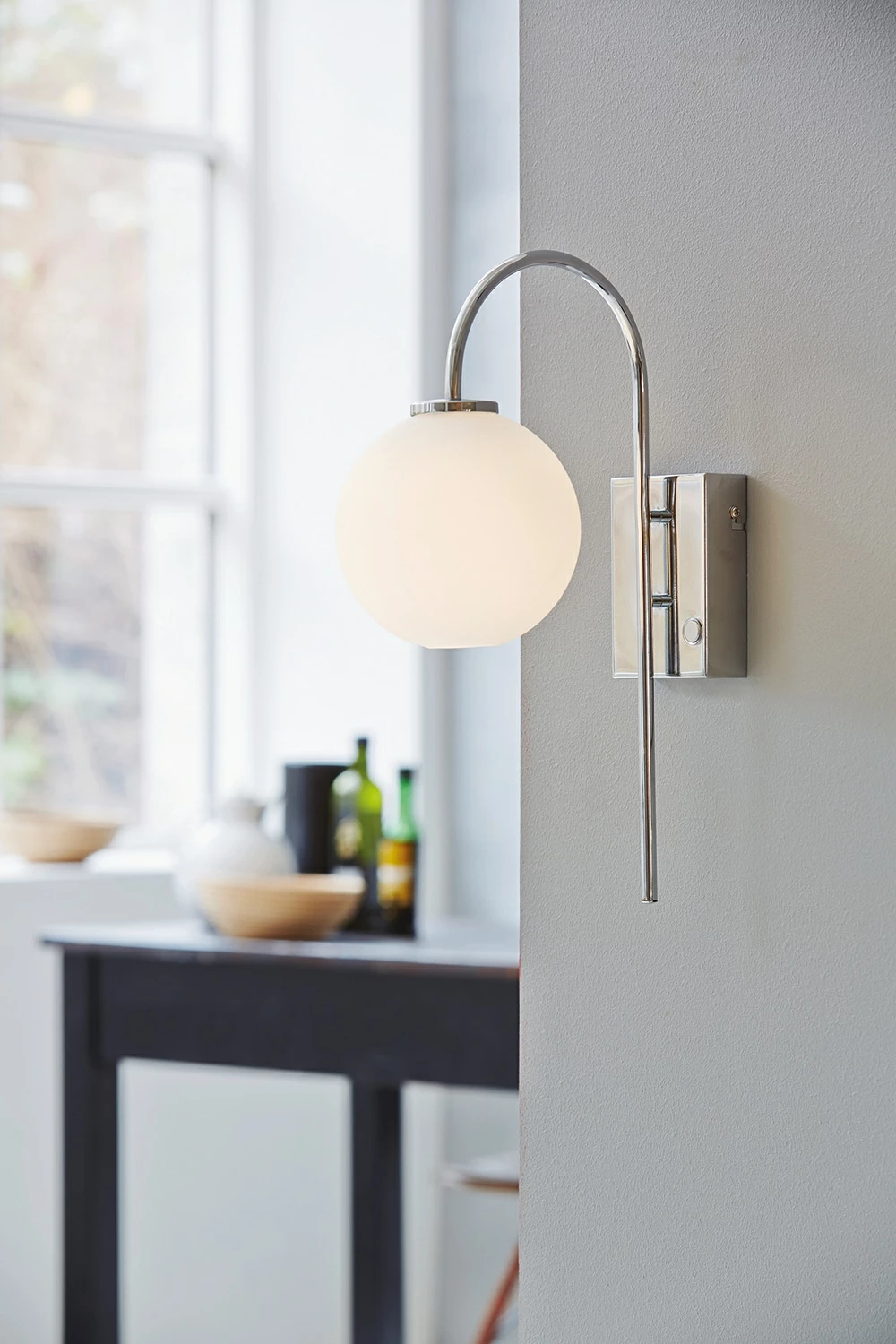 Ballon-Wandleuchte aus Herstal hat ein elegantes Design mit einem stimmungsvollen Licht. Die Wandleuchte ist schön, mit einem großen Glaskugel und paßt gut in Hallenflächen.