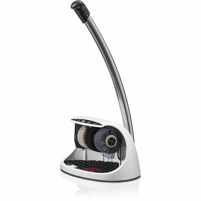 sonstiges: mit Rosshaar-Reinigungsbürste zur Vorreinigung und 2 Polierbürsten, für helle und für dunkle Schuhe, nachfüllbarer 750 ml Politurspender mit Kugelventil, optimale Standsicherheit, 1200 U/min