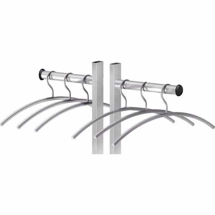 • 6 Kleiderbügel in gleichbleibender Ausrichtung durch Führungsnut und 6 Haken