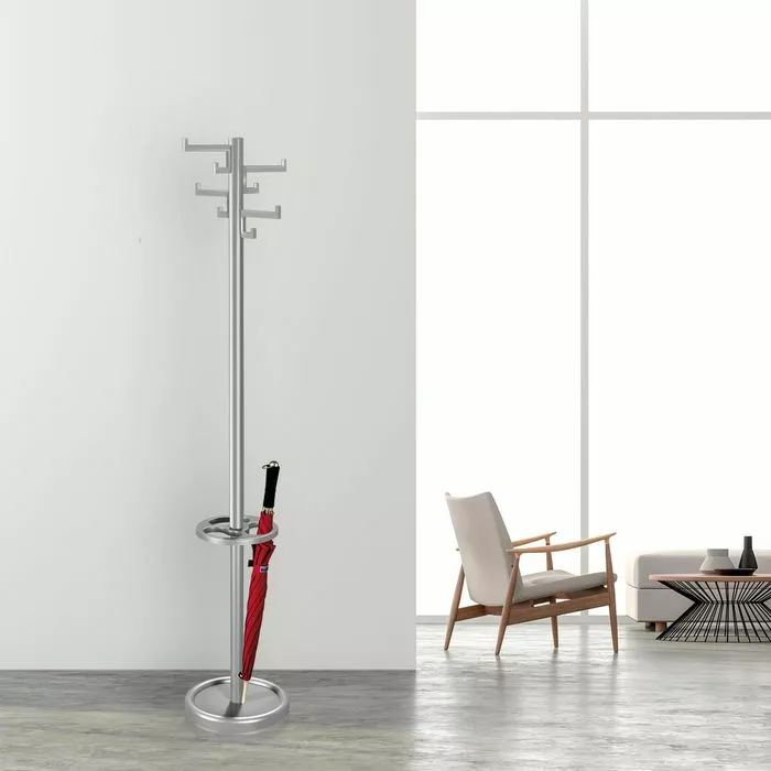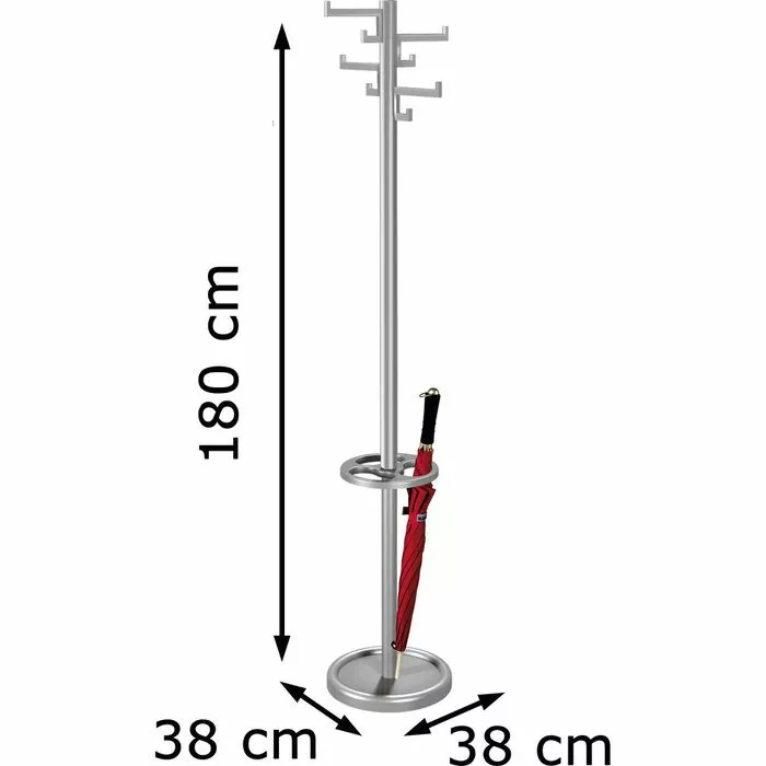 sonstiges: mit 4-armiger Hakenkrone mit 8 Hut- und Mantelhaken, Schirmhalter und Tropfmulde, standsicher durch schweren Fuß mit Granitplatte