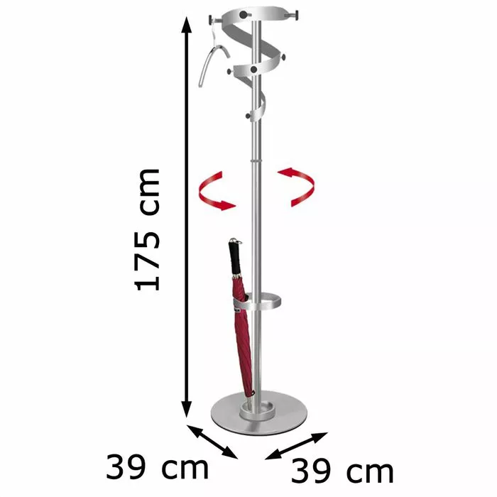 sonstiges: drehbare Krone mit 9 Mantelhaken, Schirmhalter mit Tropfmulde, standsicher durch schweren Standfuß mit Betonfüllung,