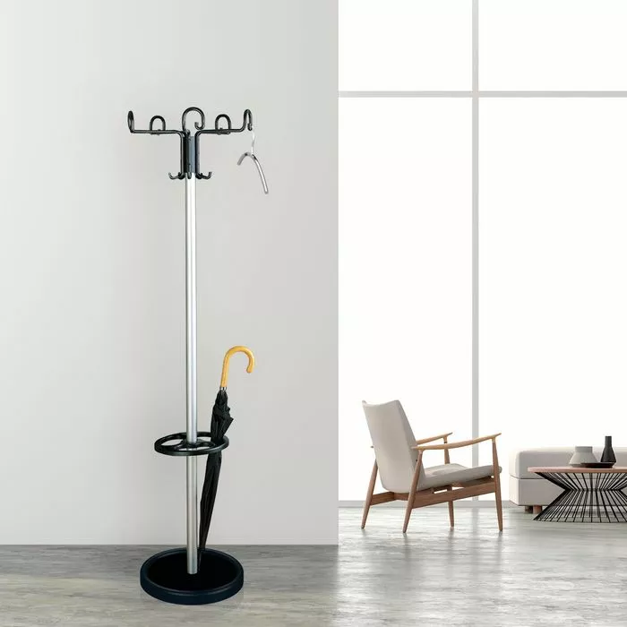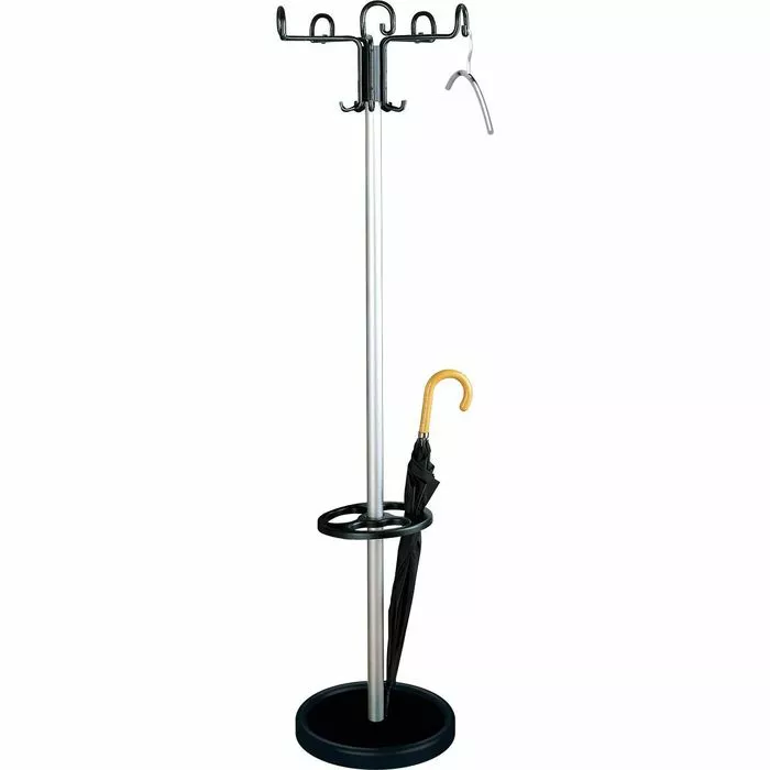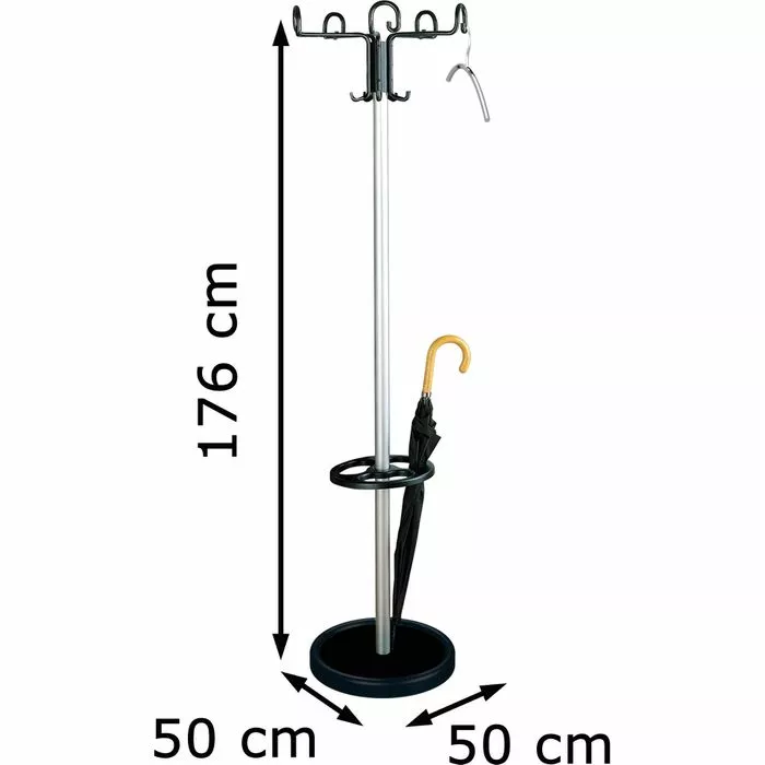 sonstiges: drehbare 5-armige Hakenkrone mit 5 Hut- und 10 Mantelhaken, Schirmhalter mit Tropfmulde, standsicher durch schweren Standfuß mit Betonfüllung