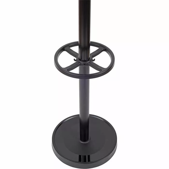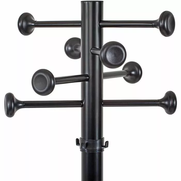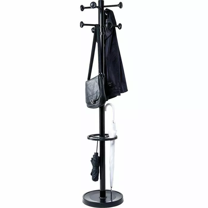 sonstiges: drehbare Hakenkrone mit 8 Hut- und Mantelhaken mit abgerundeten Kunststoff-Endstücken, je 4 zusätzliche Haken aus Kunststoff an der Säule und am Schirmständer, Schirmständer mit kratzhemmender, matt erodierter Fläche am Fuß, standsicher und stabil, schwerer Standfuß mit Betonfüllung und Kunststoff-Abdeckung, Fuß mit bodenschonenden Filzgleitern