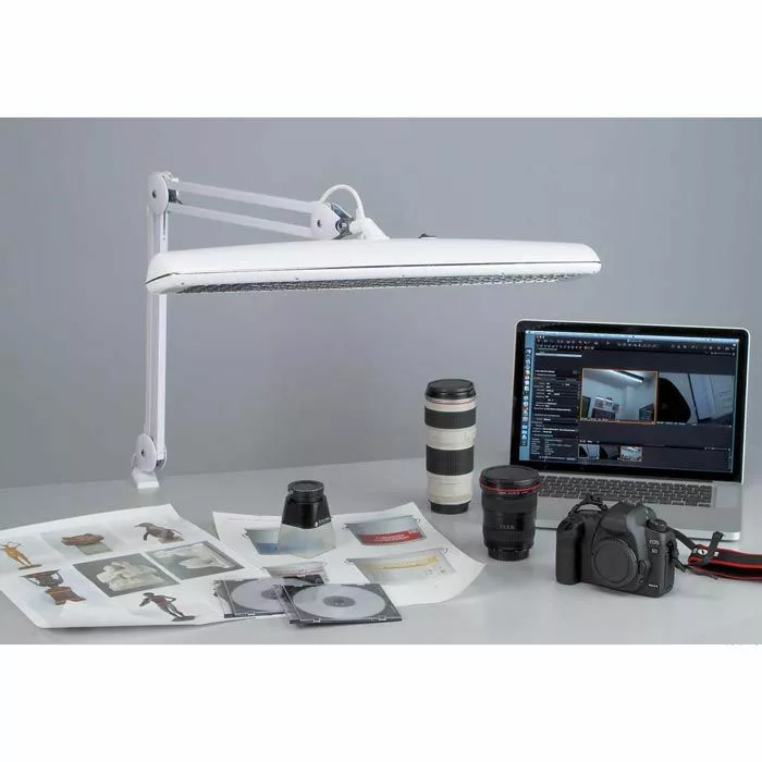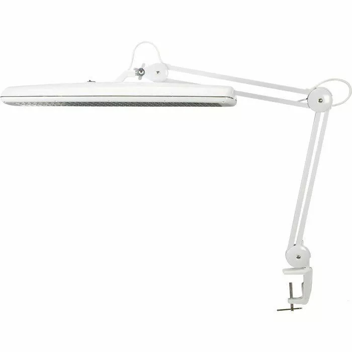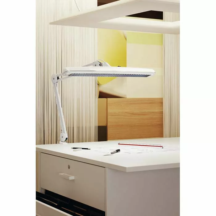sonstiges: mit beweglichem Gelenkarm aus Metall und drehbarem Leuchtenkopf aus Kunststoff, verspiegeltes Parabolraster für blendfreies Arbeiten, Schalter am Leuchtenkopf, 1,5 m Netzkabel, Metallklemme zum Fixieren an Tischen bis zu einer Stärke von 65 mm