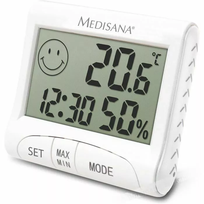 sonstiges: Speicherung und Anzeige der Max.- und Min.-Werte, Komfortzonen-Indikator, Alarm, zum Aufstellen mit integriertem Ständer oder Hängen durch Magnethalterung geeignet, Anzeige in Celsius oder Fahrenheit umschaltbar