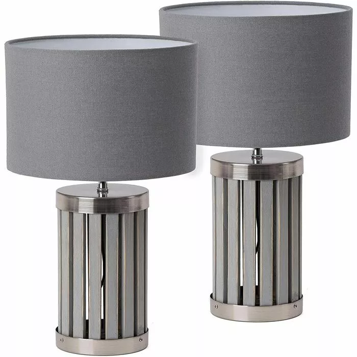 • Grauer Lampenschirm aus Textil für eine warme Lichtstimmung
