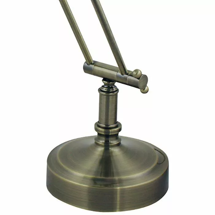 sonstiges: Bankerlampe mit schwenkbarem Leuchtenkopf aus Glas und vermessingtem Lampenkörper, mit Gelenkarm