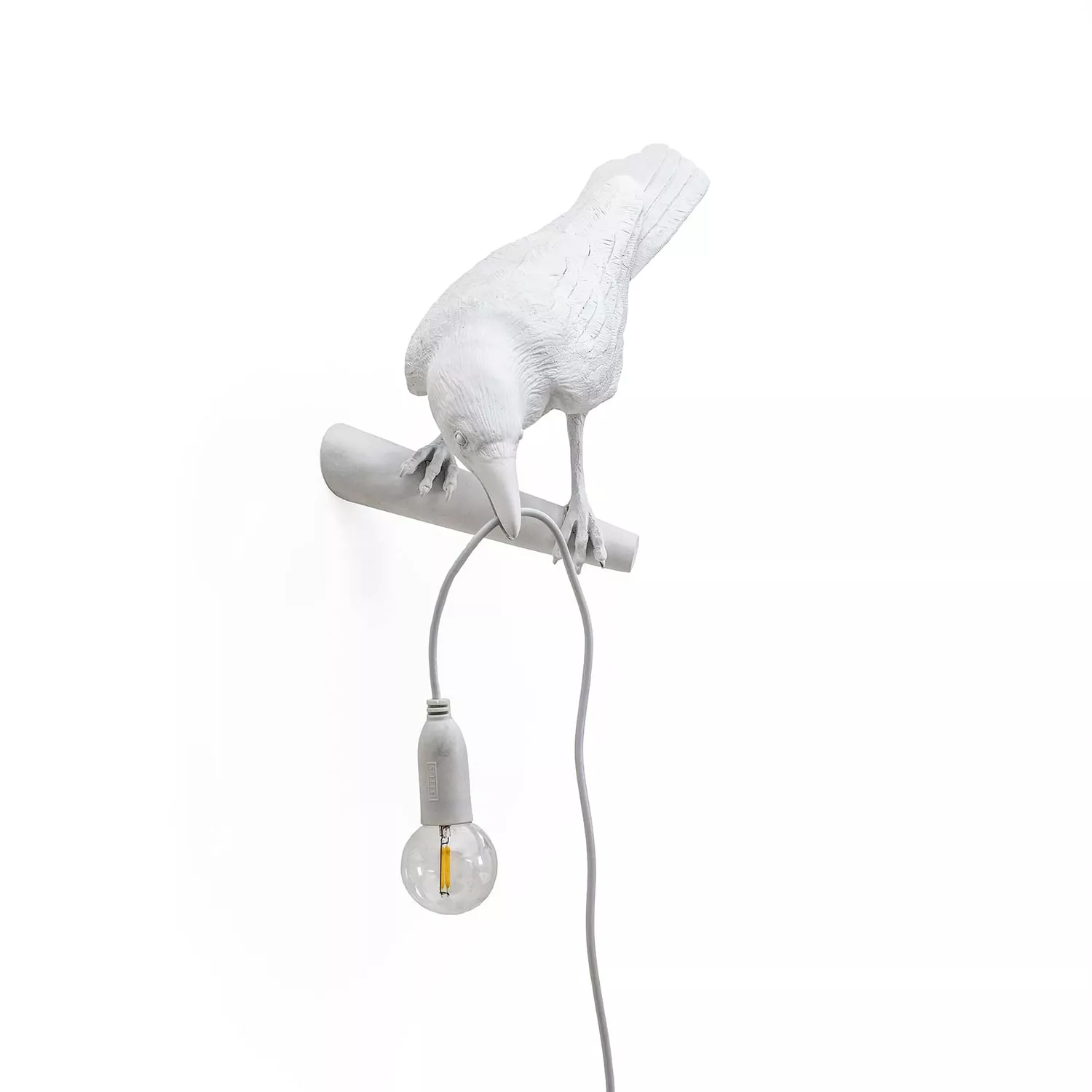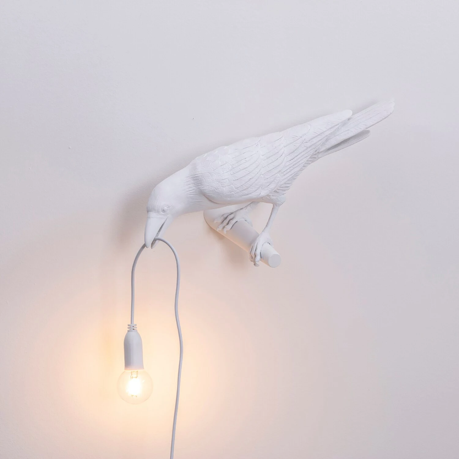 Bird Lamp von Seletti ist ein wunderschöner und verspielter Vogel, der von Marcantonio entworfen wurde. Der Vogel besteht aus Harz und ist in zwei verschiedenen Farben erhältlich, schwarz und weiß, und in zwei verschiedenen Posen. Das dazugehörige LED-Licht gibt ein weiches und warmes Licht ab, das den Raum beleuchtet.