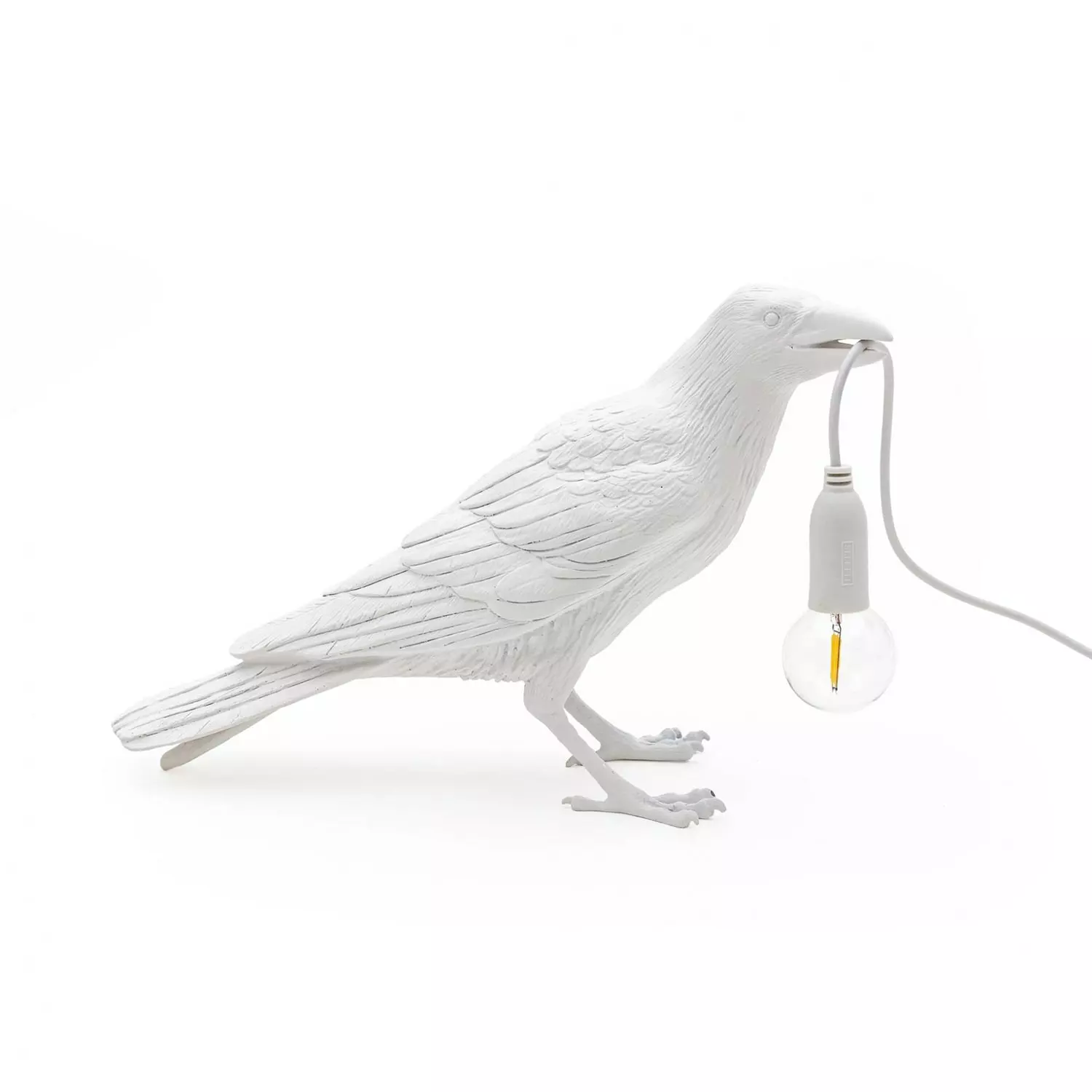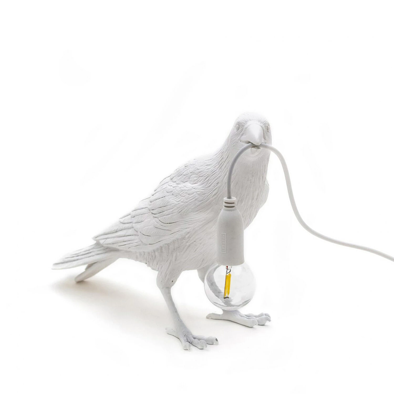 Bird Lamp von Seletti ist ein wunderschöner und verspielter Vogel, der von Marcantonio entworfen wurde. Der Vogel besteht aus Harz und ist in zwei verschiedenen Farben erhältlich, schwarz und weiß, und in zwei verschiedenen Posen. Das dazugehörige LED-Licht gibt ein weiches und warmes Licht ab, das den Raum beleuchtet.
