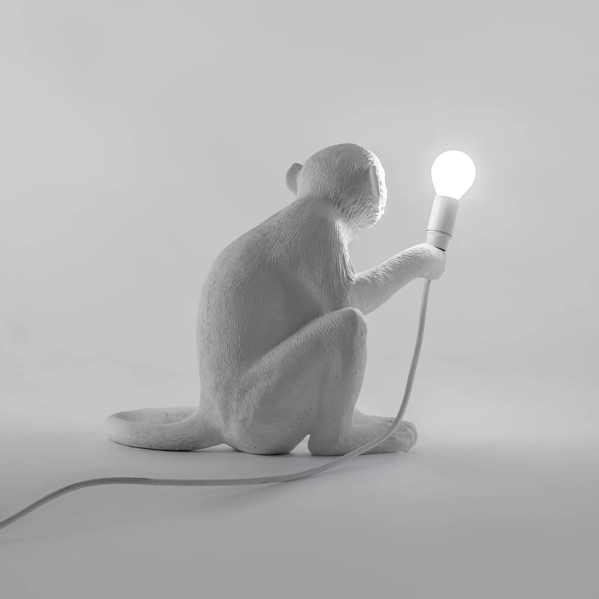 Die Lampe muss am Rand einer ebenen Fläche platziert werden, da sich die Hand des Affens an der Kante hält. Wenn die Lampe in der Mitte einer Oberfläche platziert wird, wippt die Lampe und steht nicht stabil. Siehe Detailbilder.