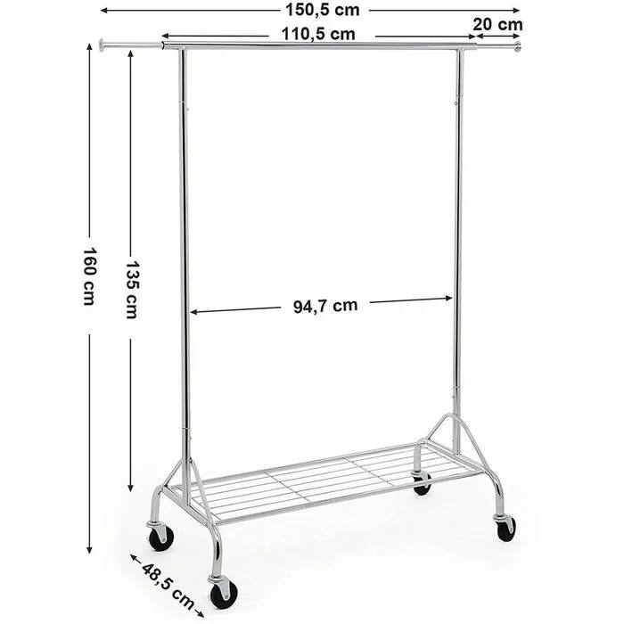 sonstiges: verchromtes Gestell, Kleiderstange bis 50 kg und Ablage bis 25 kg belastbar, Kleiderstange beiderseits ausziehbar