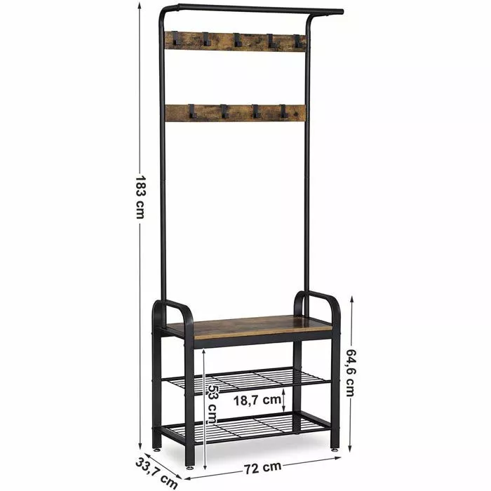 sonstiges: 9 abnehmbare Haken, pulverbeschichtetes Gestell mit MDF-Platten nach Emissionsklasse E1