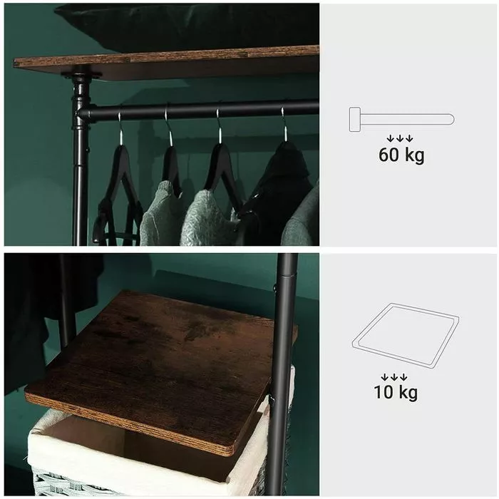 • Tragkraft der Kleiderstange bis 60 kg, untere Ablage bis 25 kg