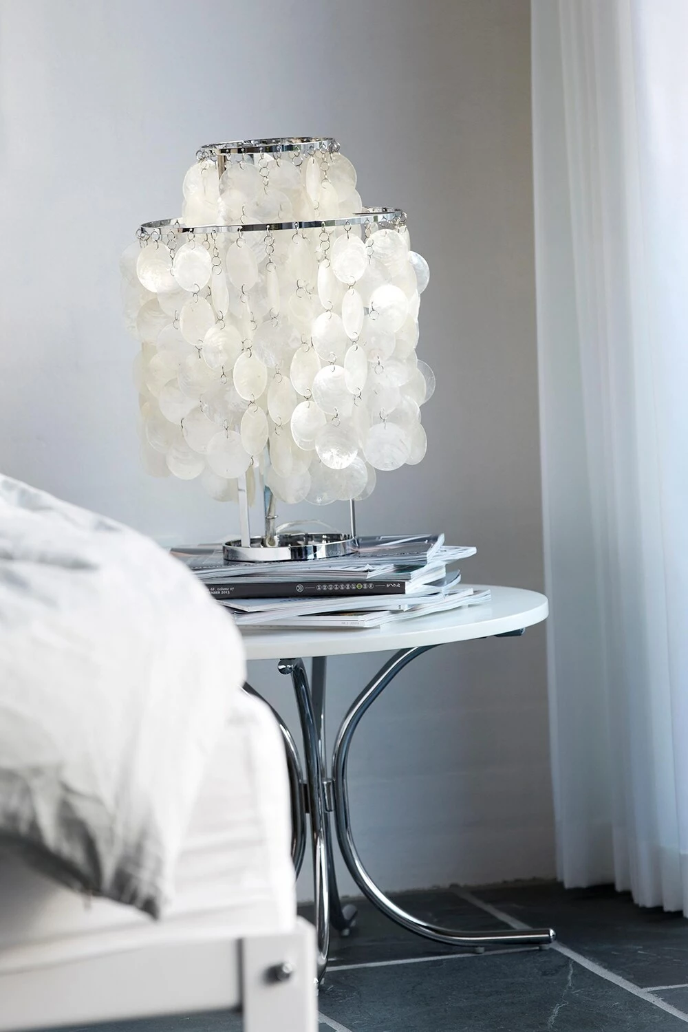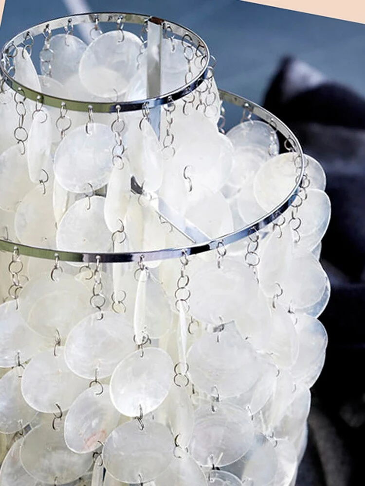 Fun 2TM von Verpan ist von Verner Panton und hat einen exklusiven Blick mit einem Cluster von hängenden Verzierungen aus schönen Perlmutt-Perle entwickelt. Der Metallkörper aus verchromtem Metall besteht aus zwei Ringen an der Spitze in verschiedenen Größen. Kennwerte Transparent Kabel mit Ein- / Ausschalter Lichtquelle nicht im PRICE enthalten Zertifizierungen – CE, UL Gewicht 3 kg EU-Version