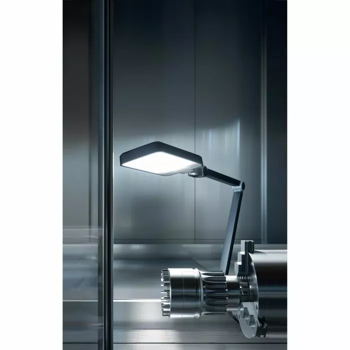sonstiges: Kopf mit Kugelgelenk frei bewegbar, hoch bewegliches und ausbalanciertes Gestänge, Bedientaste am Leuchtenkopf, Netzkabellänge 3 m, mit Anschraubflansch
