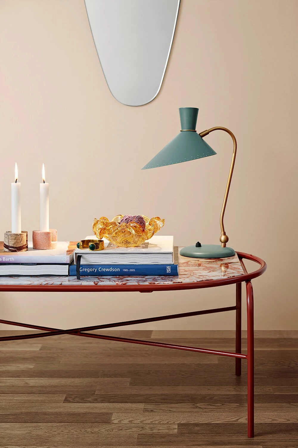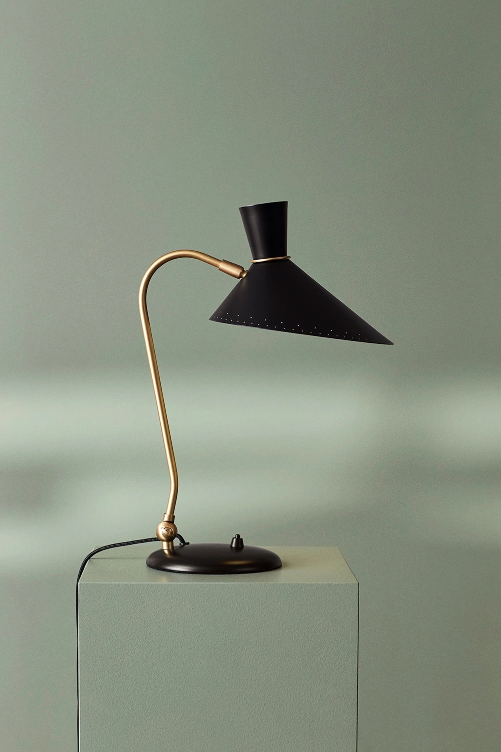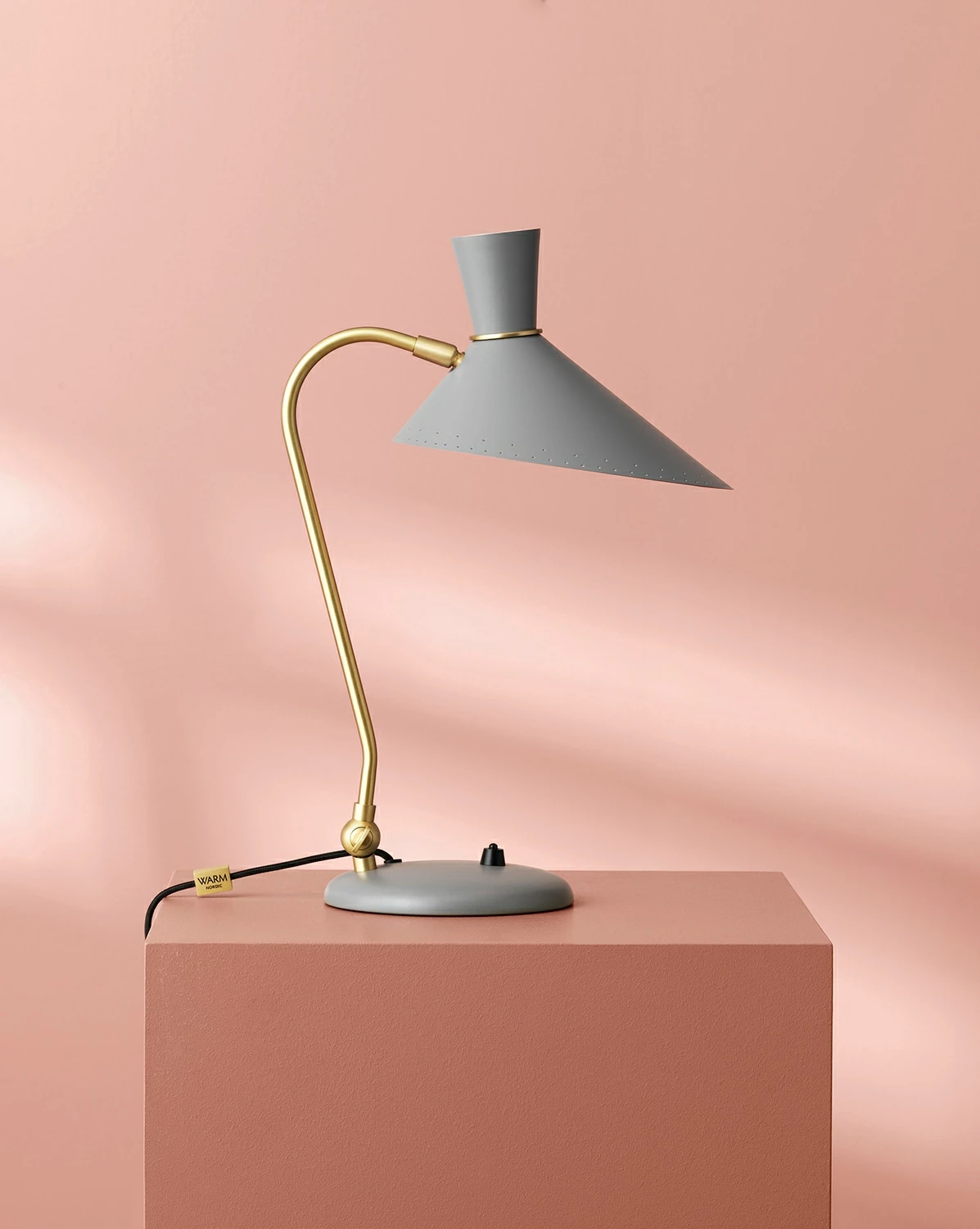 Die 50 inspirierte Tischlampe Bloom von Warm Nordic wird von anerkannten Svend Aage Holm-Sørensen, ein großes Symbol in der Lichtgestaltung entworfen. Bloom und sein Design wurden in den 1950er Jahren gebaut und haben immer ein vertrautes Stück in der Vintage-Welt seit. Die Tischlampe der Materialien und Formen strahlen eine Kombination aus Verspieltheit und Raffinesse, die ein attraktives Element im Büro oder auf dem Nachtschränkchen sein wird. Bloom ist aus massivem Messing und lackiertem Stahl, der entlang der Kante des Schirms ein perforiertes Muster aufweist. Die Tischleuchte ist in sechs verschiedenen seidenmatt Farben zur Auswahl.