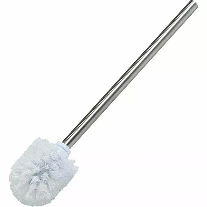• Glänzender, rostfreier Edelstahlstiel mit wechselbarem, weißem Bürstenkopf